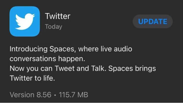 โดยเวอร์ชั่นอัพเดทนี้ Twitter เป็นการแนะนำฟีเจอร์ใหม่ในชื่อ Spaces ให้ผู้ให้ได้เริ่มตื่นตัว และเตรียมความพร้อม ซึ่งฟีเจอร์นี้คาดว่าจะเปิดตัวจริงๆในเดือนหน้า