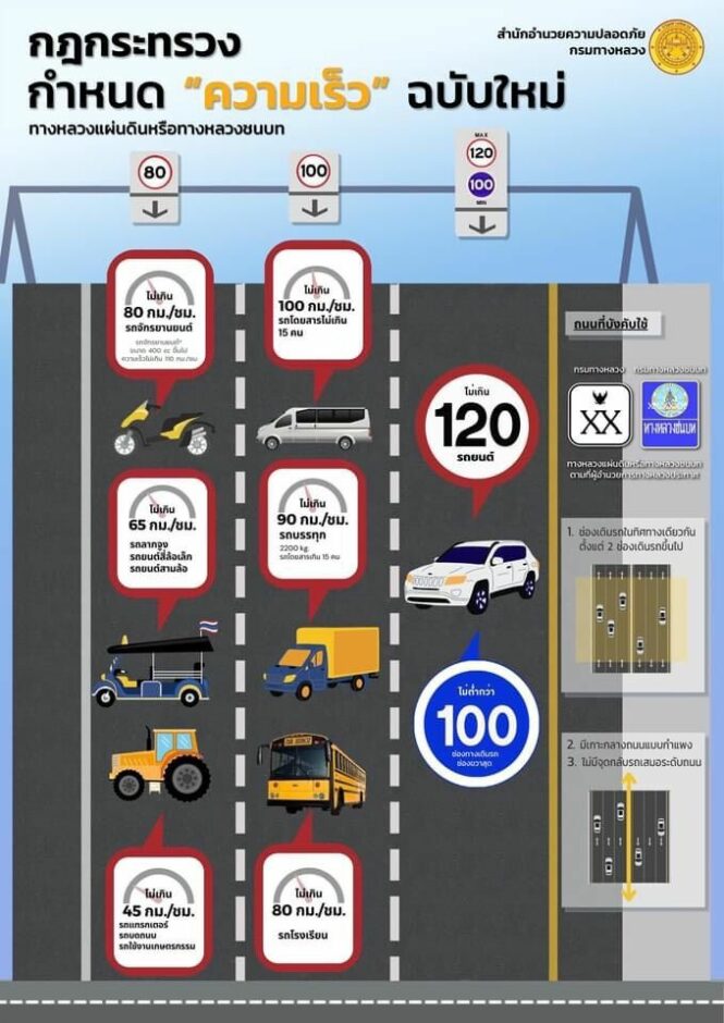 - บังคับใช้ อัตราความเร็วรถใหม่ รถยนต์ขับไม่เกิน 120 กม./ชม.