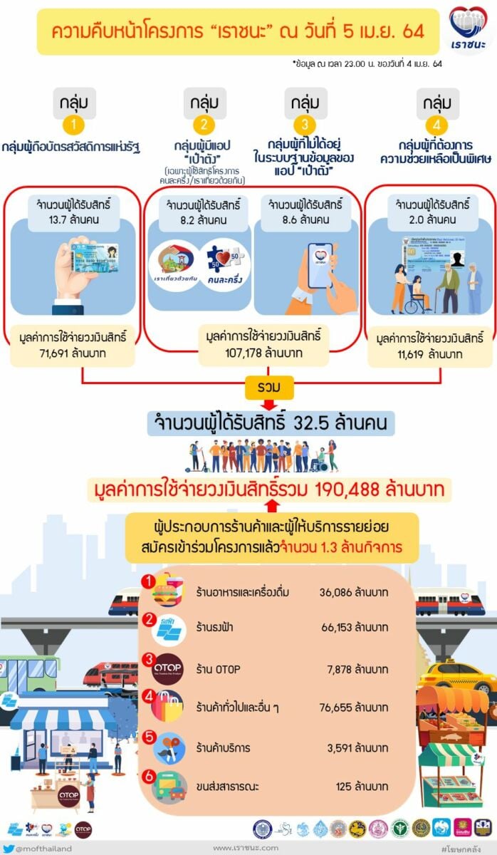 เช็คเราชนะ 5 เม.ย. 64เงินสะพัดทั้งเป๋าตัง บัตรคนจน บัตรประชาชน 1.9 แสนล้านบาท