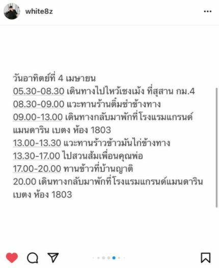 ทางด้านหนุ่มไวท์ ได้โพสต์แจ้งข่าวผ่าน IG ส่วนตัว พร้อมเผยไทม์ไลน์ว่าไปไหนมาบ้างดังนี้