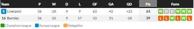 ลิเวอร์พูลไม่มีอะไรจะเสีย หากหวังจะไปเล่น แชมเปี้ยนส์ ลีก ในฤดูกาลหน้าจะต้องเก็บ 3 แต้มในเกมนี้เท่านั้น เพื่อแซงเลสเตอร์ขึ้นไป ดูจากคุณภาพทีมแล้ว ทัพหงส์แดงดูดีกว่า แต่เบิร์นลี่ย์ได้เปรียบตรงที่เล่นในบ้านและมักทำได้ดีในการเล่นกับทีมใหญ่ อย่างไรก็ตามที่สุดแล้วคาดว่า ทีมเยือนน่าจะเฉือนเอาชนะไปได้ในที่สุด