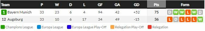 - บาเยิร์น มิวนิค ลงเล่นกับ เอาก์สบวร์ก และเอาชนะได้ใน 10 จาก 12 นัดหลังสุด (ทุกรายการ)