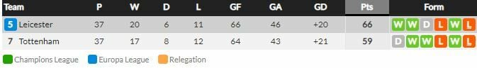 - เบรนแดน ร็อดเจอร์ส กุนซือเลสเตอร์ ซิตี้ พาทีมแพ้เชลซีในนัดล่าสุด ทำให้สถานการณ์ในลีกตอนนี้หล่นมาอยู่ที่ 5 ของตาราง โดยมีลูกได้-เสีย น้อยกว่าลิเวอร์พูล หนทางจะได้ไป ชปล. ค่อนข้างยาก เกมนี้ต้องเก็บชัยเหนือสเปอร์สให้ได้ และไปลุ้นให้ทัพหงส์แดงสะดุด กับเกม คริสตัล พาเลซ