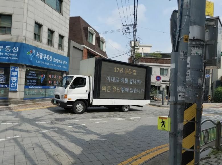 อ้างอิงจากเวปไซต์ koreaboo ล่าสุดทางแฟนคลับของ อีซึงกิ ได้มีการลงทุนเช่ารถบรรทุกที่มีจอLEDฉายข้อความ ตัวใหญ่ชัดเจน ขับตระเวนไปทั่วย่านที่พักของอีซึงกิ เพื่อแสดงความไม่พอใจและ ข่มขู่กดดันให้นักแสดงหนุ่ม อีซึงกิ เลิกกับนักแสดงสาว โดยป้ายบนรถบรรทุกระบุว่า “ครอบครัวของลีดาอิน สร้างเหยื่อมากเกินไป”