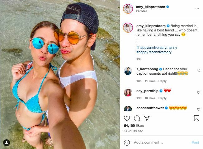 ล่าสุดสาว เอมี่ ได้โพสต์ภาพอวดรัวๆบนอินสตาแกรม @amy_klinpratoom แต่ยังไม่หมดแค่นั้น นอกจากภาพที่โพสต์จะเป็นโมเมนต์สวีทหวานกับคุณสามีแล้ว แคปชั่นยังอ่านแล้วชวนเขินอีก โดยมีแคปชั่นว่า