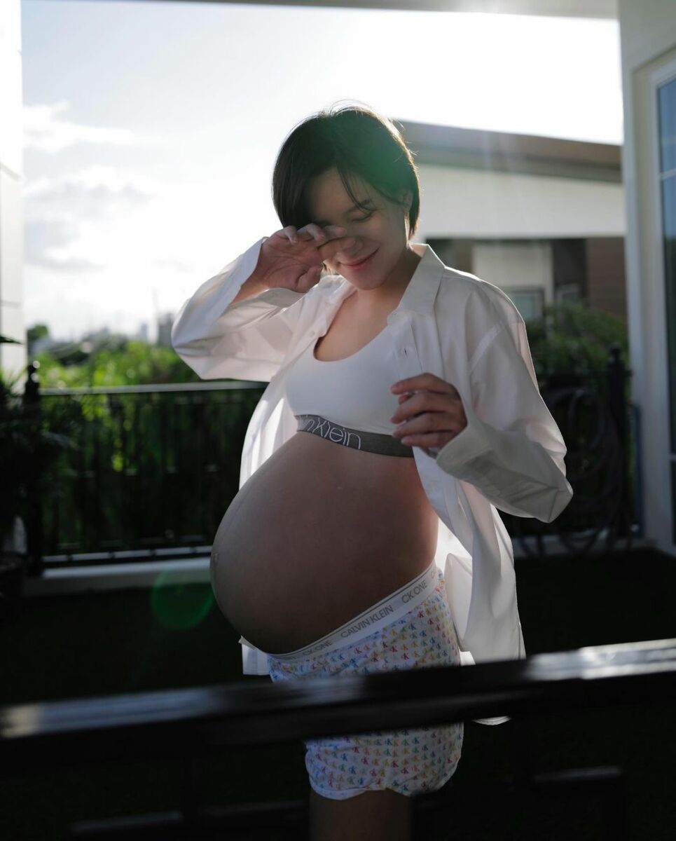 “This is US ย้อนไปตอน 30 วีค ได้ช่างภาพคิวทอง @virunan มาถ่ายโมเม้นท์นี้เก็บไว้ให้…ตัดสินใจถูกมากกกก เพราะตอนนี้กำลังจะเข้า 35 วีค เดินแทบไม่ไหวแล้วค้าบบบบ”