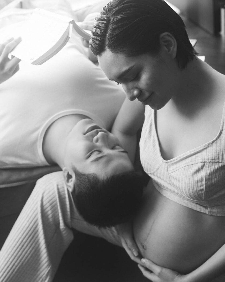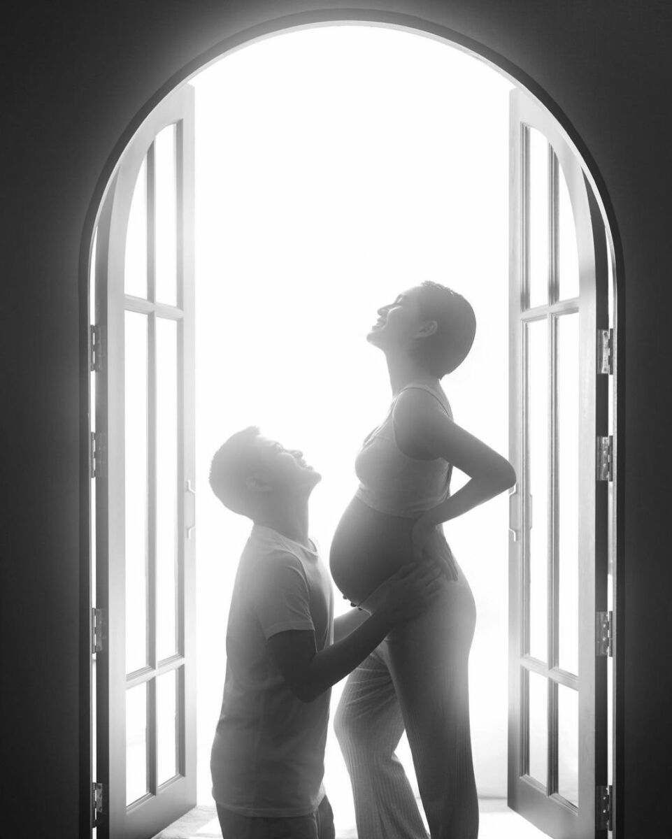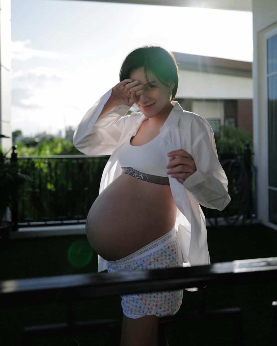“This is US ย้อนไปตอน 30 วีค ได้ช่างภาพคิวทอง @virunan มาถ่ายโมเม้นท์นี้เก็บไว้ให้…ตัดสินใจถูกมากกกก เพราะตอนนี้กำลังจะเข้า 35 วีค เดินแทบไม่ไหวแล้วค้าบบบบ”