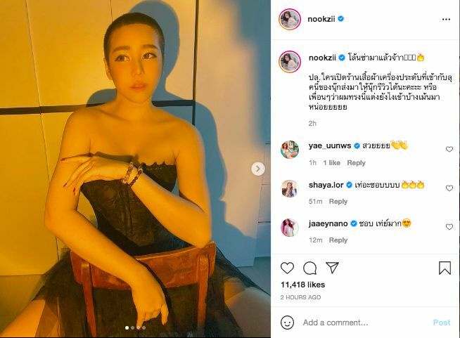 โดยล่าสุด เธอได้โพสต์คลิป ผ่านอินสตาแกรม @nookzii เผยให้เห็นว่าเธอทำลังโกนผม พร้อมเขียนข้อความว่า
