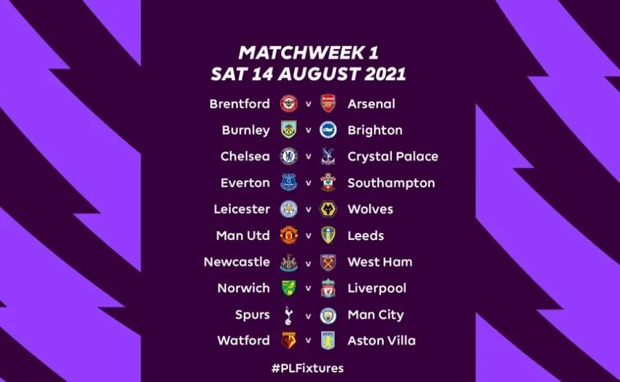 พรีเมียร์ ลีก อังกฤษ ได้ประกาศ โปรแกรม พรีเมียร์ ลีก ซีซั่นใหม่ประจำฤดูกาล 2021/22 ออกมาเป็นที่เรียบร้อยแล้ว เมื่อวันพุธที่ 16 มิถุนายน ที่ผ่านมา โดยจะทำการแข้งขันกันตั้งแต่วันที่ 14 สิงหาคม 2564 เป็นต้นไป