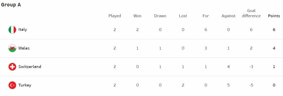 จบเกมนี้ทำให้ เวลส์ มีโอกาสดีที่จะตามอิตาลี ที่เข้ารอบต่อไปเป็นที่เรียบร้อยแล้ว โดยต้องไปแบ่งแต้มกับอิตาลีให้ได้ในนัดหน้า ส่วนตุรกีงานหนักเพราะยังไม่มีแต้มเลย นัดหน้าต้องดวลกับสวิตเซอร์แลนด์