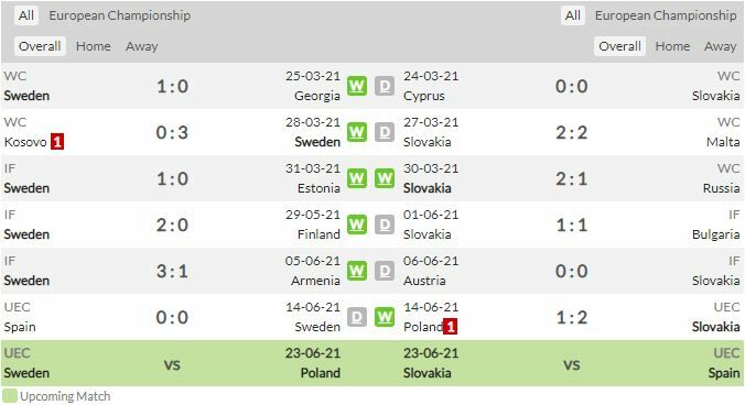 - สโลวาเกีย ลงเล่นกับสวีเดนและเอาชนะไม่ได้เลยใน 6 นัดหลังสุด (ทุกรายการ)