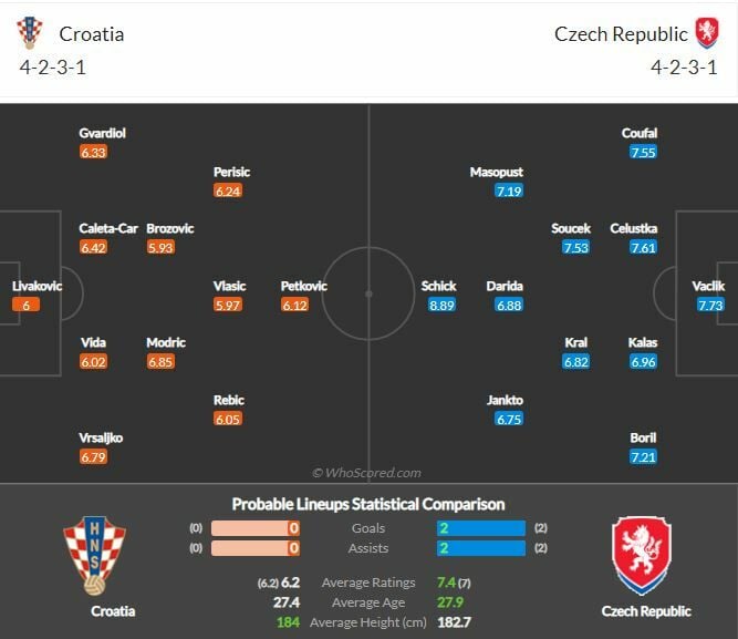 โครเอเชีย แพ้นัดประเดิมสนามให้กับ อังกฤษ ในเกมยูโรนัดแรก ทำให้ฟอร์ม 3 นัดหลังไม่ค่อยดีนัก เสมอ 1 แพ้ถึง 2 นัด ด้าน เช็ก เอาชนะ สกอร์แลนด์ ได้สวยงาม และเกมนี้ขอแค่ไม่แพ้ก็ค่อนข้างจะได้เปรียบ จึงเชื่อว่าเกมนี้น่าจะออกมาในแบบสูสี และเสมอกันไปแบบมีสกอร์ในที่สุด