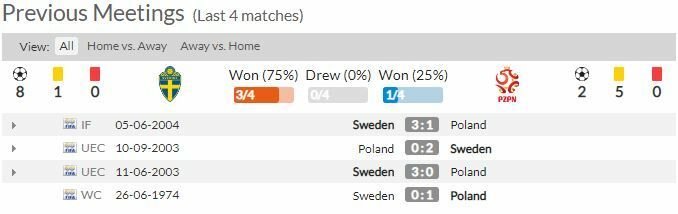 - สวีเดน ลงเล่นกับโปแลนด์และเอาชนะได้ใน 3 นัดหลังสุดที่เจอกัน (ทุกรายการ)