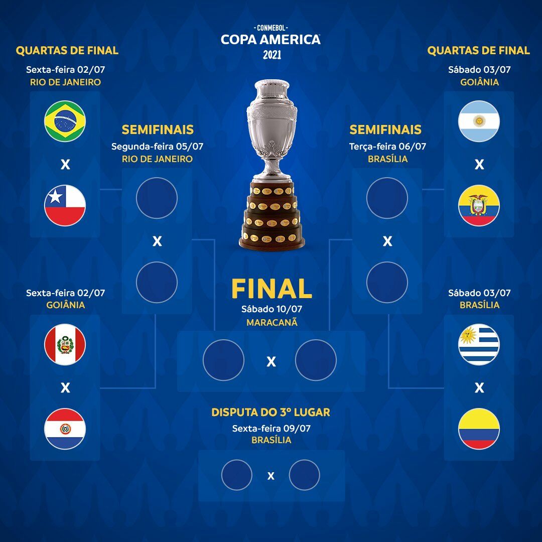 Estes serão os cruzamentos da próxima fase da CONMEBOL #CopaAmérica 🏆#VibraElContinente #VibraOContinente pic.twitter.com/ooVZWvHY6J