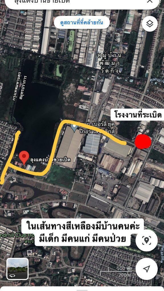 *** ขณะที่ในทวิตเตอร์ #โรงงานกิ่งแก้วไฟไหม้ ได้มีการแจ้งพิกัด ในซอย กิ่งแก้ว 21 หลังโรงงานที่ระเบิด มีบ้านคน ออกไม่ได้ เป็นซอยตัน แต่มีทางคลองสามารถออกได้แค่รถมอเตอร์ไซค์ *** รบกวนช่วยคนป่วย คนแก่ ในนั้น
