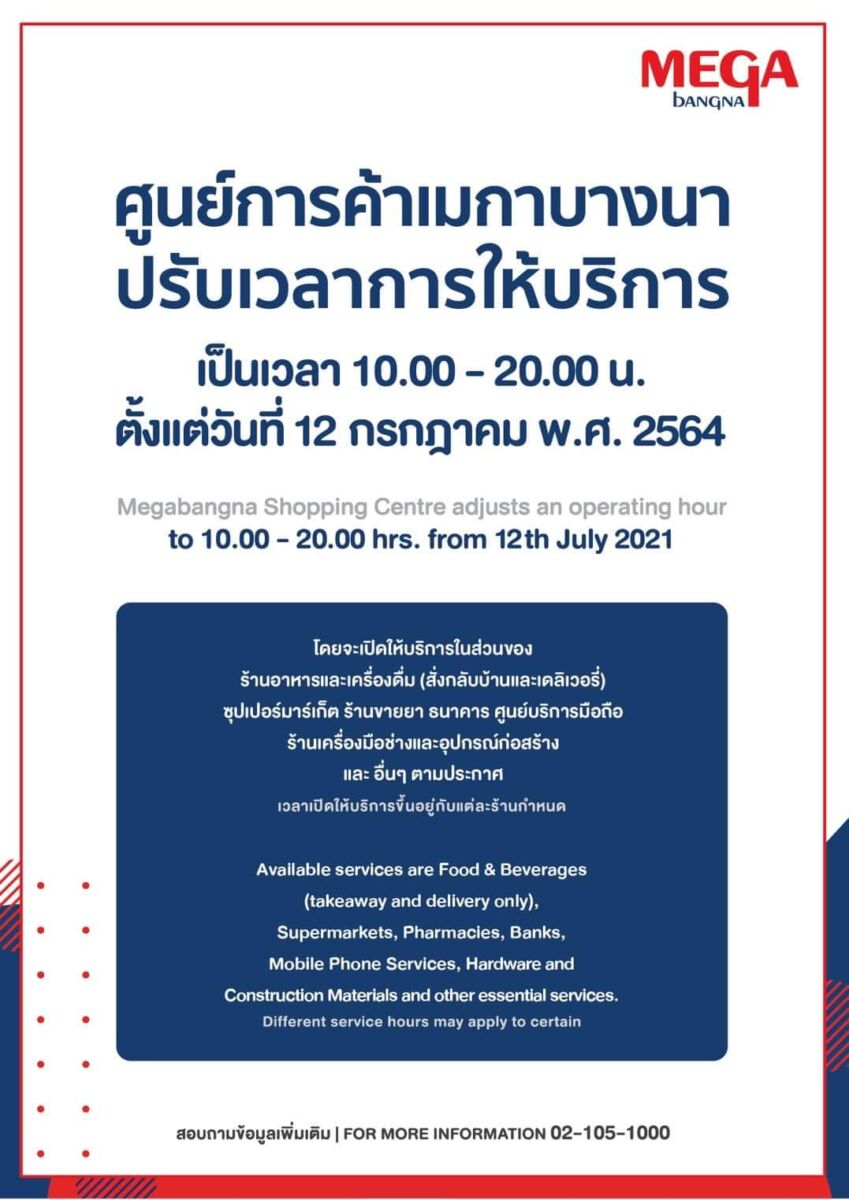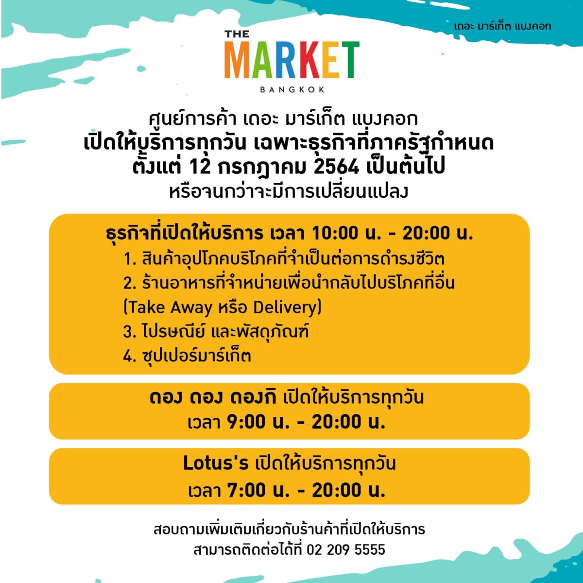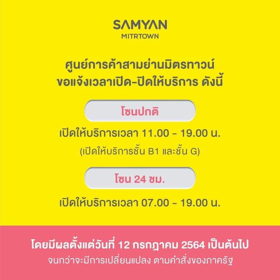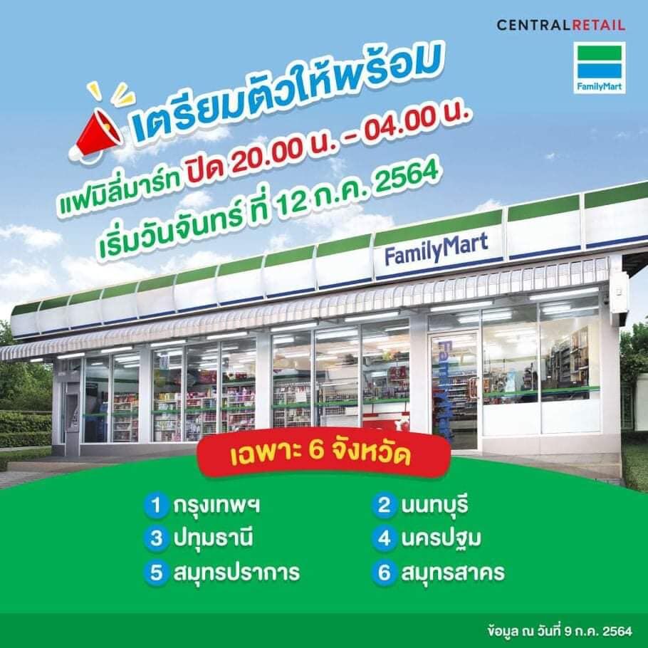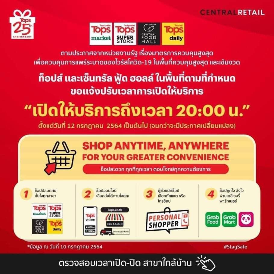 เวลาเปิด-ปิดของห้างสรรพสินค้า ศูนย์การค้า ซูเปอร์มาร์เก็ต ร้านสะดวกซื้อ ในเขตกรุงเทพมหานคร ในวันที่ 12 กรกฎาคม 2564 เป็นต้นไป