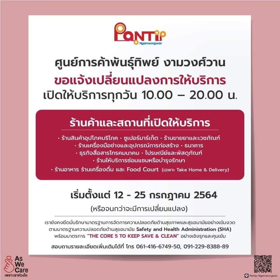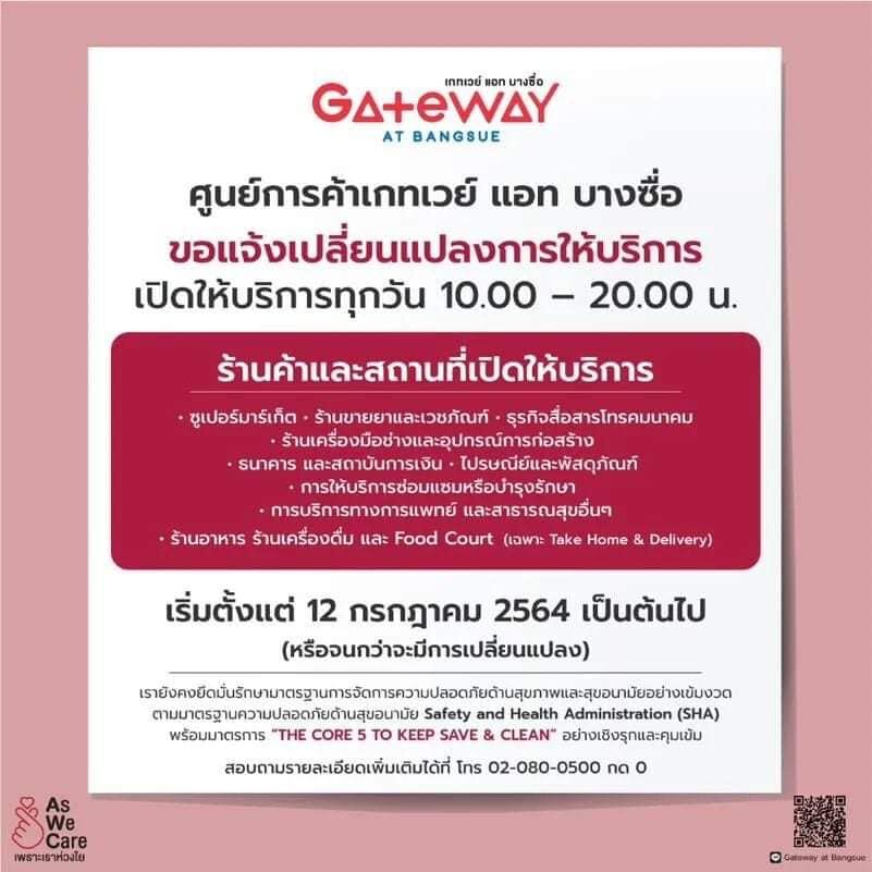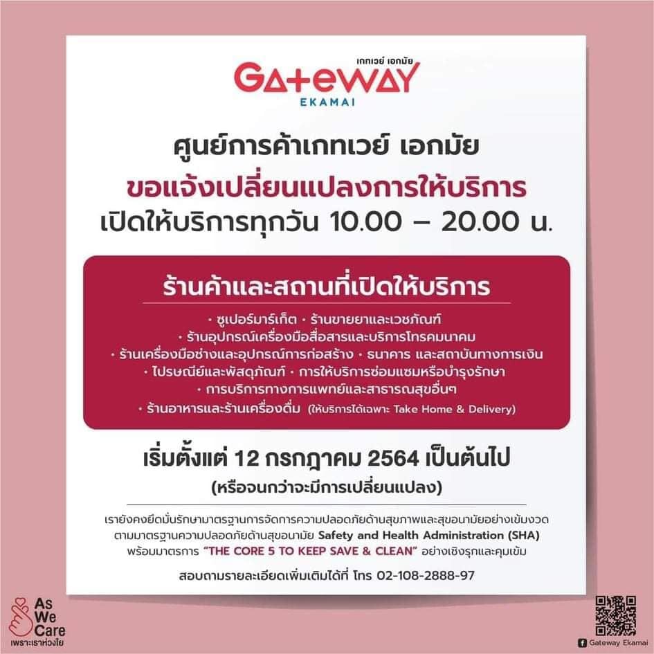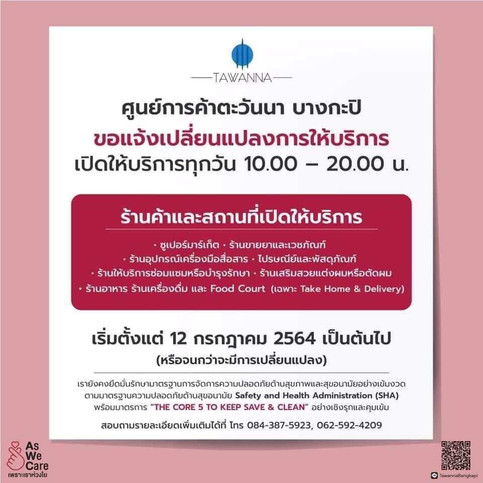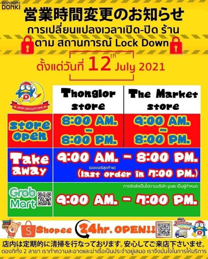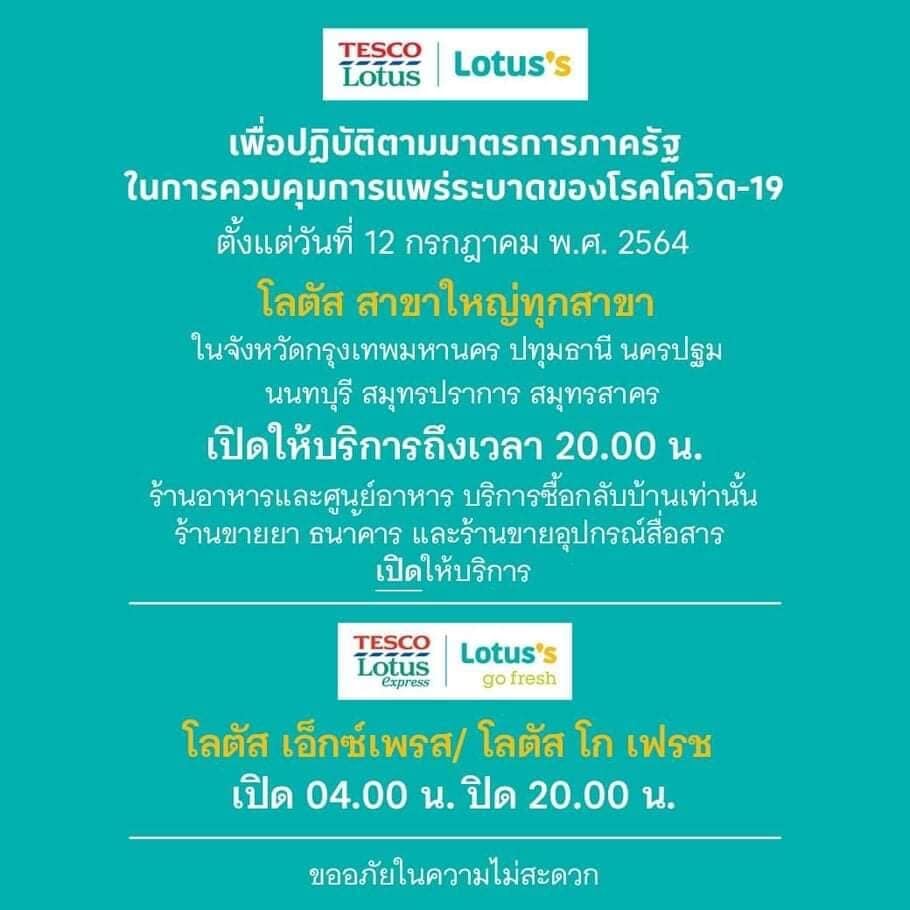 เวลาเปิด-ปิดของห้างสรรพสินค้า ศูนย์การค้า ซูเปอร์มาร์เก็ต ร้านสะดวกซื้อ ในเขตกรุงเทพมหานคร ในวันที่ 12 กรกฎาคม 2564 เป็นต้นไป