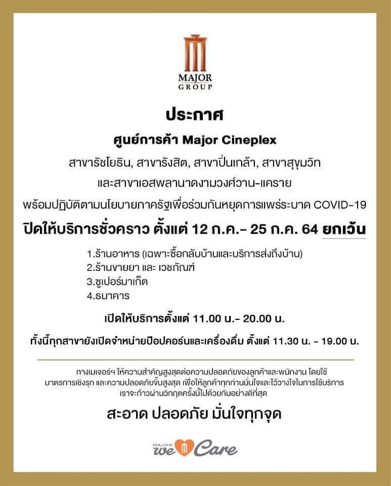 เช็กที่นี่! เวลา ห้าง เปิด-ปิดกี่โมง หลังประกาศล็อกดาวน์ล่าสุด วันที่ 12 กรกฎาคม 2564 เป็นต้นไป ในเขตกรุงเทพมหานคร