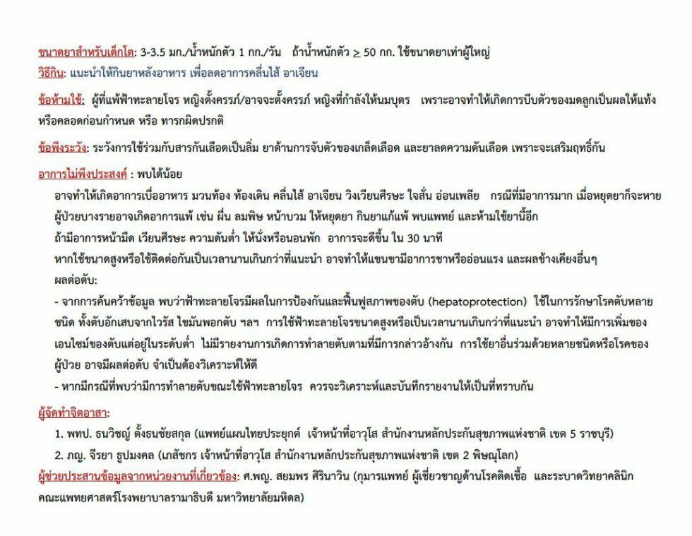 หากมีกรณีที่พบว่ามีการทําลายตับขณะใช้ฟ้าทะลายโจร ควรจะวิเคราะห์และบันทึกรายงานให้เป็นที่ทราบกัน