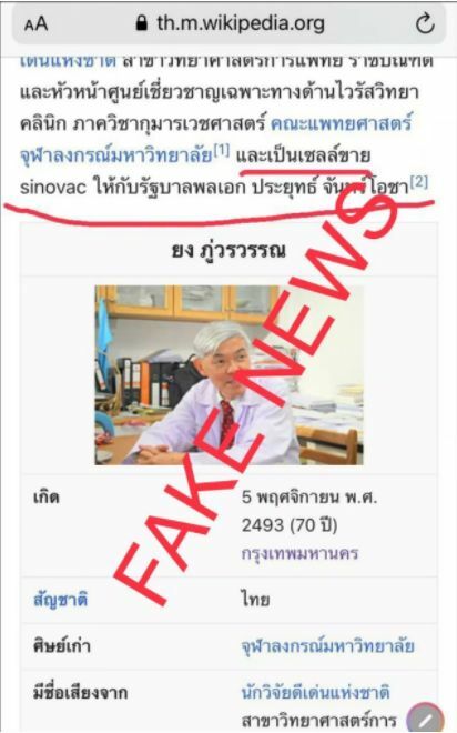 ตำรวจเข้าจับกุม ‘มือดี’ แก้ วิกิหมอยง ว่าเป็นเซลล์ขายซิโนแวค