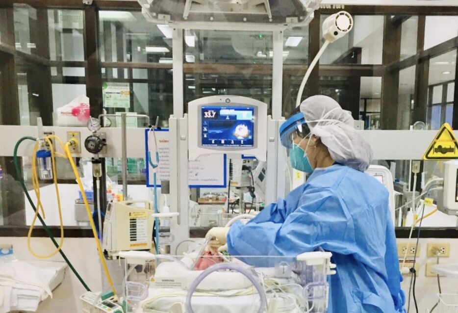 ทางหน่วยทารกแรกเกิดจึงได้เตรียมห้องความดันลบสำหรับผู้ป่วยทารกแรกเกิดจำนวน 2 ห้องไว้ตั้งแต่การระบาดระลอกแรกเมื่อปลายปี 2563 ซึ่งได้รับความกรุณาอย่างยิ่งจากทีมวิศวกรจุฬาฯรุ่น 75 และชุมชนคนอินเดียในประเทศไทย (Thai-Indian community) ทำให้เราสามารถให้การดูแลทารกได้อย่างดีในช่วงแรก