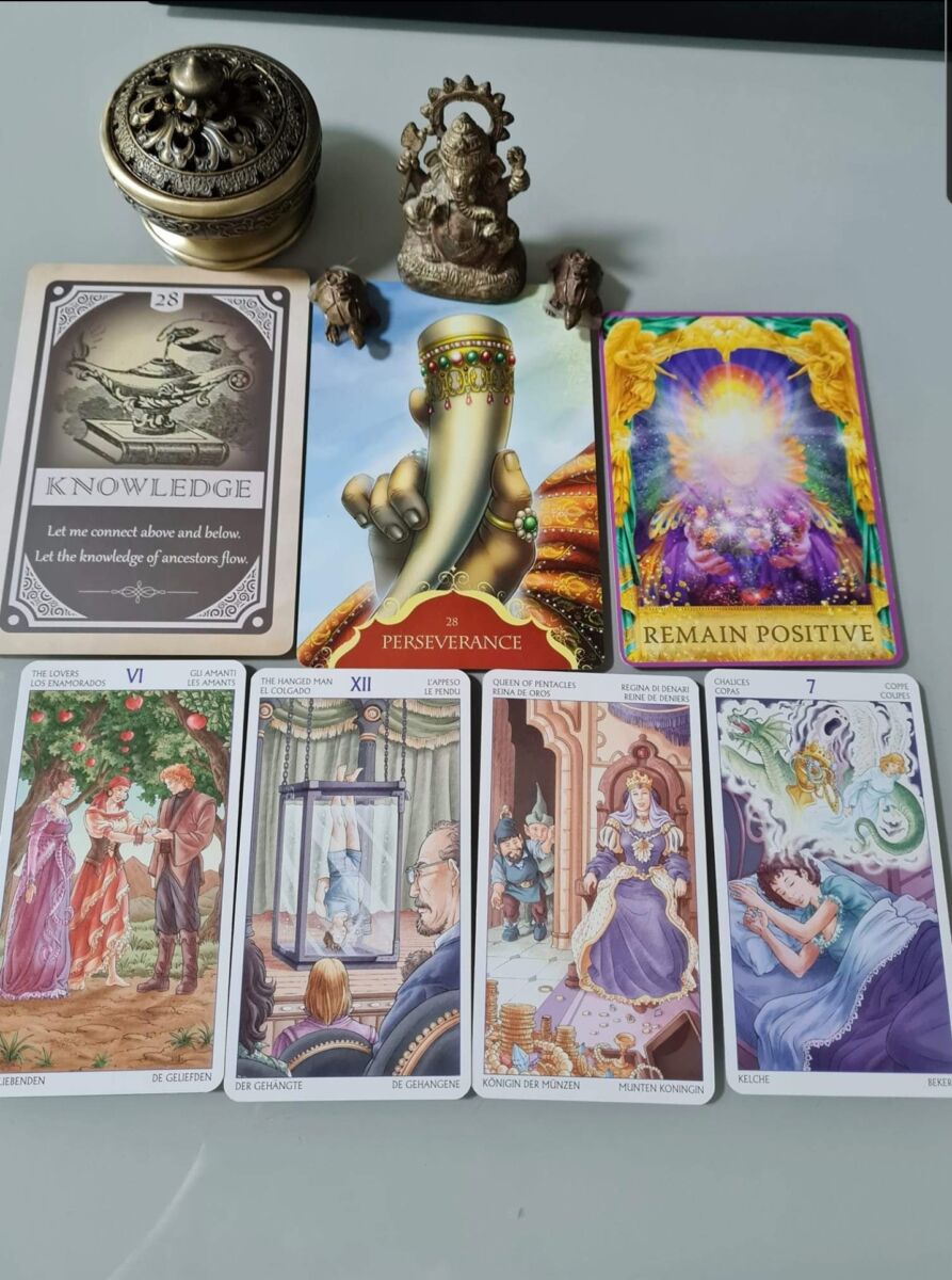 คุณยังคงมุ่งมั่นที่จะสร้างฐานะให้กับครอบครัว แม้แต่ในเวลานอนหลับ คุณยังคงเก็บไปฝัน เทวดานางฟ้ายังคงช่วยคุณในโลกจิตวิญญาณ ภาพ hang man ช่วงนี้อาจต้องหยุดนิ่งสักพักค่ะ ใครที่รองานให้ทำใจไปก่อนค่ะ หันมาหาความรู้ในโลกจิตวิญญาณภายในตัวคุณเอง ช่วงนี้แนะนำให้นิ่งนะค่ะ เพราะไม่นานคุณจะมีคนมา offer บางสิ่งบางอย่างให้คุณ อาจเป็นความรักที่จะมา อาจมีคนเห็นคุณค่าของคุณค่ะ คนนั้นจะเป็นผู้หญิงที่มีความมั่งคั่ง มีบารมี คือคนที่จะช่วยคุณ ณ สถานการณ์แบบนี้