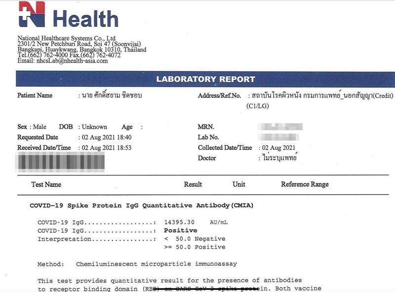 สำนักข่าว ข่าวสด รายงานว่า นายศักดิ์สยาม ชิดชอบ รัฐมนตรีว่าการกระทรวงคมนาคม ได้ให้เปิดเผยกับสื่อมวลชนทางไลน์ ได้ไปเข้ารับการตรวจหาภูมิคุ้มกัน โรคโควิด-19 โดยพบว่า ภูมิคุ้มกันขึ้นสูงมากมีค่าเท่ากับ 14,395 โดยก่อนหน้านี้ตนได้ฉีดวัคซีนซิโนแวค จำนวน 1 เข็ม และ ตามด้วยวัคซีนแอสตราเซเนกา อีกหนึ่งเข็ม