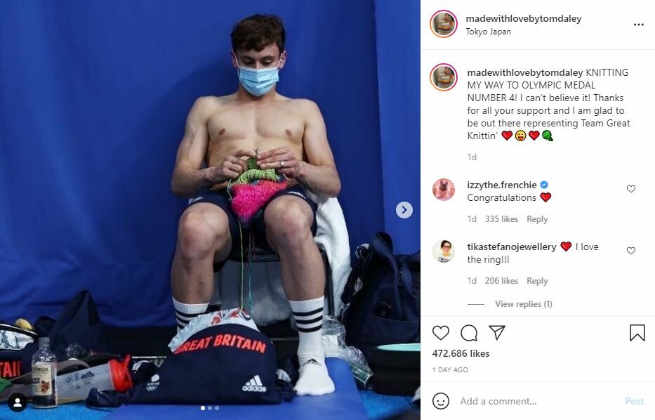 หากใครติดตามอินสตาแกรม madewithlovebytomdaley จะพบว่าการถักนิตติงเป็นงานอดิเรกของเดลีย์มาตลอด ฝีมือการถักนิตติงของเขาไม่ธรรมดา แต่ถึงขั้นถักเสื้อไหมพรม หมวก ถุงเท้า และเสื้อให้สุนัขของเขา ก่อนหน้านี้เขาก็โพสต์ภาพถุงไหมพรมสำหรับเก็บเหรียญทองโอลิมปิกที่เขาถักเอง โดยด้านหนึ่งเป็นลายธงชาติอังกฤษ อีกด้านเป็นลายธงชาติญี่ปุ่น