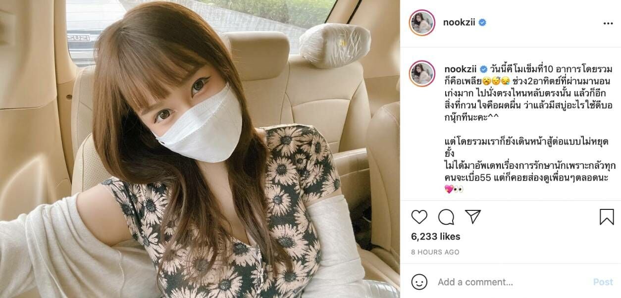โดยล่าสุด สาวนุ๊กซี่ได้ออกมาเล่าอาการล่าสุด หลังคีโมเข็มที่ 10 ผ่านอินสตาแกรม @nookzii เผยว่า