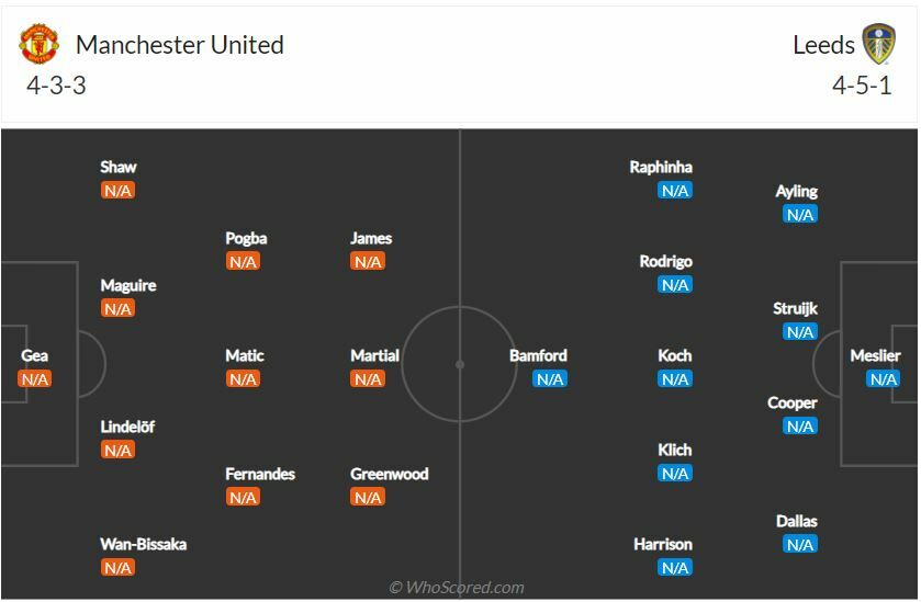 - คาดว่า โซลชา จะจัดทีมเหมือนชุดอุ่นเครื่องนัดล่าสุด แนวรุก จะมี เมสัน กรีนวู้ด, อองโตนี่ มาร์กซิยาล และ บรูโน่ แฟร์นันด์ส ส่วนแดนกลาง เนมานย่า มาติช กับ ปอล ป็อกบา เป็นตัวคุมจังหวะเกม แนวรับ แฮร์รี่ แม็กไกวร์ ยืนคู่กับ วิคตอร์ ลินเดลอฟ จับคู่กันในแดนหลัง