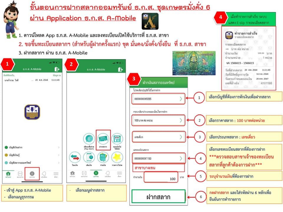 ทางด้านของขั้นตอนการดำเนินการผ่านช่องทางแอปพลิเคชัน : ธ.ก.ส. A-mobile สามารถทำได้ดังนี้