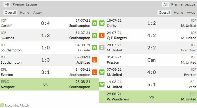 - เซาธ์แฮมป์ตัน ลงเล่นในเกมลีก และแพ้มาใน 3 นัดหลังสุด
