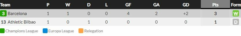 - บาร์เซโลน่า ลงเล่นพบกับ แอธ.บิลเบา และไม่แพ้เลยใน 5 นัดหลังที่เจอกัน (ทุกรายการ)