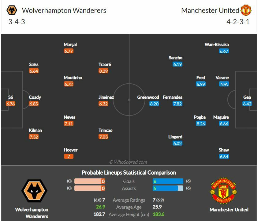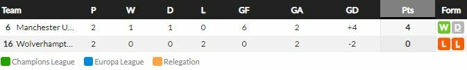 วูล์ฟแฮมป์ตัน ฟอร์มในลีกค่อนข้างแย่ ยังไม่มีแต้มโดยแพ้มา 2 นัดติดกันแล้ว เกมนี้ต้องพยายามมีแต้มให้ได้ ส่วน แมนฯ ยูไนเต็ด ก็ต้องการเรียกฟอร์มเก่งกลับมาให้ได้หลังนัดที่แล้วสะดุดเสมอทัพนักบุญมาแบบเสียฟอร์ม คาดว่าเกมนี้ทีมเยือนน่าจะมีดีพอที่จะบุกมาเฉือนชนะได้ในเกมนี้