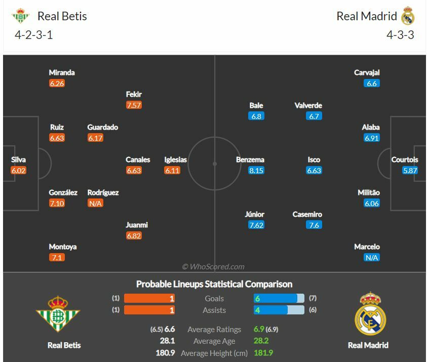 - มานูเอล เปเยกรินี่ กุนซือชาวชิลีจะปรับผู้เล่นบางตำแหน่งในนัดนี้ ในเกมรุกยังวาง บอร์ฆา อิเกลเซียส ยืนหน้าเป้าตามเดิม แต่จะปรับเอา เซร์คิโอ กานาเลส ขึ้นสูงไปยืนเป็นมิดฟิลด์ทำเกมรุกอยู่ด้านหลัง อิเกลเซียา พร้อมขยับ นาบิล เฟคีร์ ไปยืนฝั่งซ้าย ฝั่งขวาเป็น ฆวนมี่