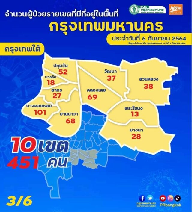 - พื้นที่กรุงเทพใต้ : 451 ราย