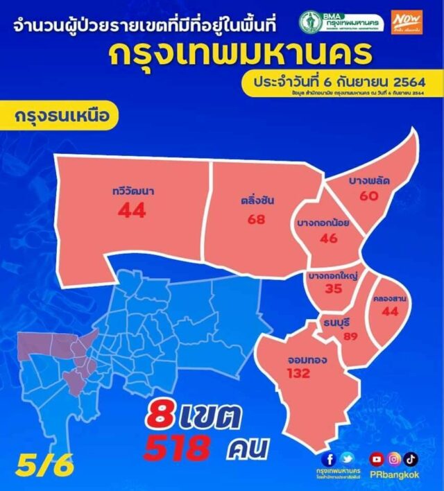 - พื้นที่กรุงธนเหนือ : 518 ราย