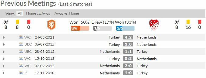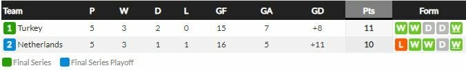 ฮอลแลนด์เล่นได้ดี ชนะมา 5 เกมจาก 7 นัดหลัง และพ่ายเกมเดียวเท่านั้นตลอด 10 นัดที่ผ่านมา ด้านตุรกี เพิ่งกลับมาชนะเกมแรกจากการลงสนาม 5 นัดที่ผ่านมาในเกมล่าสุด เกมนี้ทัพไก่งวงมาเยือนจึงคาดว่าน่าจะเป็นงานหนักและมีสิทธิ์ที่จะโดนเจ้าบ้านทัพอัศวินสีส้มเบียดเอาชนะไปได้