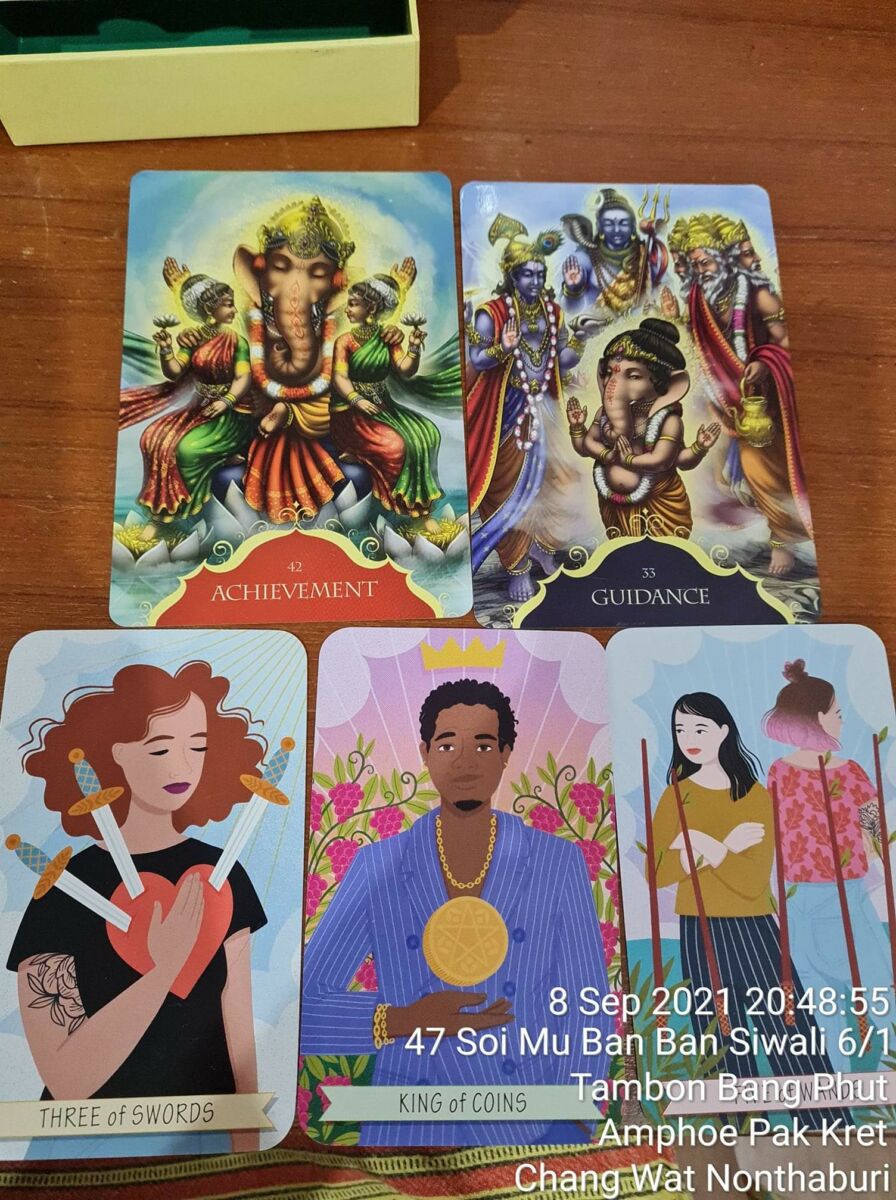 พระพิฆเนศบอกว่าคุณมีสิ่งศักดิ์สิทธิ์ช่วยเหลือคุณ จิตวิญญาณคุณจะนำพาคุณไปจนถึงความสำเร็จที่คุณฝันไว้ ท่านอาจส่งใครสักคนมาเพื่อเป็นที่ปรึกษาให้คำแนะนำกับคุณค่ะ การเงินยังคงมีปัญหา จะมีคนมาแนะนำคุณในเรื่องนี้ค่ะ ท่านบอกว่าสิ่งที่คุณขอไว้เรื่องการเงิน จะเป็นจริงได้ จะต้องมีคนเข้ามาส่งเสริม สนับสนุนคุณ เพื่อให้ได้ในสิ่งที่คุณขอได้เร็วยิ่งขึ้น
