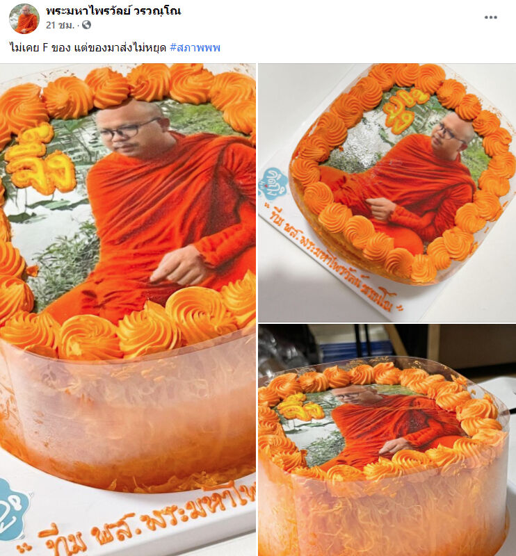 ปังไม่ไหว! ‘พระมหาไพรวัลย์’ โพสต์ภาพ เค้ก จาก FC ทีม พส. ท่านบอก ไม่เคย F แต่ของมาส่งไม่หยุด ล่าสุดต้องกินตัวเองแล้วนะ