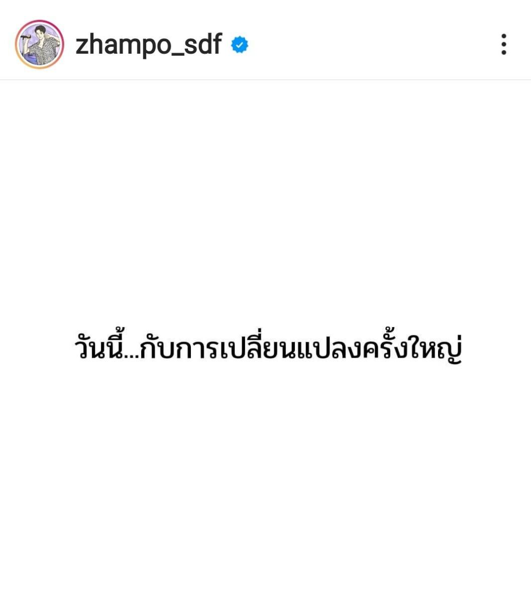 ล่าสุดแชมป์ S.D.F ได้โพสต์ใน IG ส่วนตัวว่า “วันนี้กับการเปลี่ยนแปลงครั้