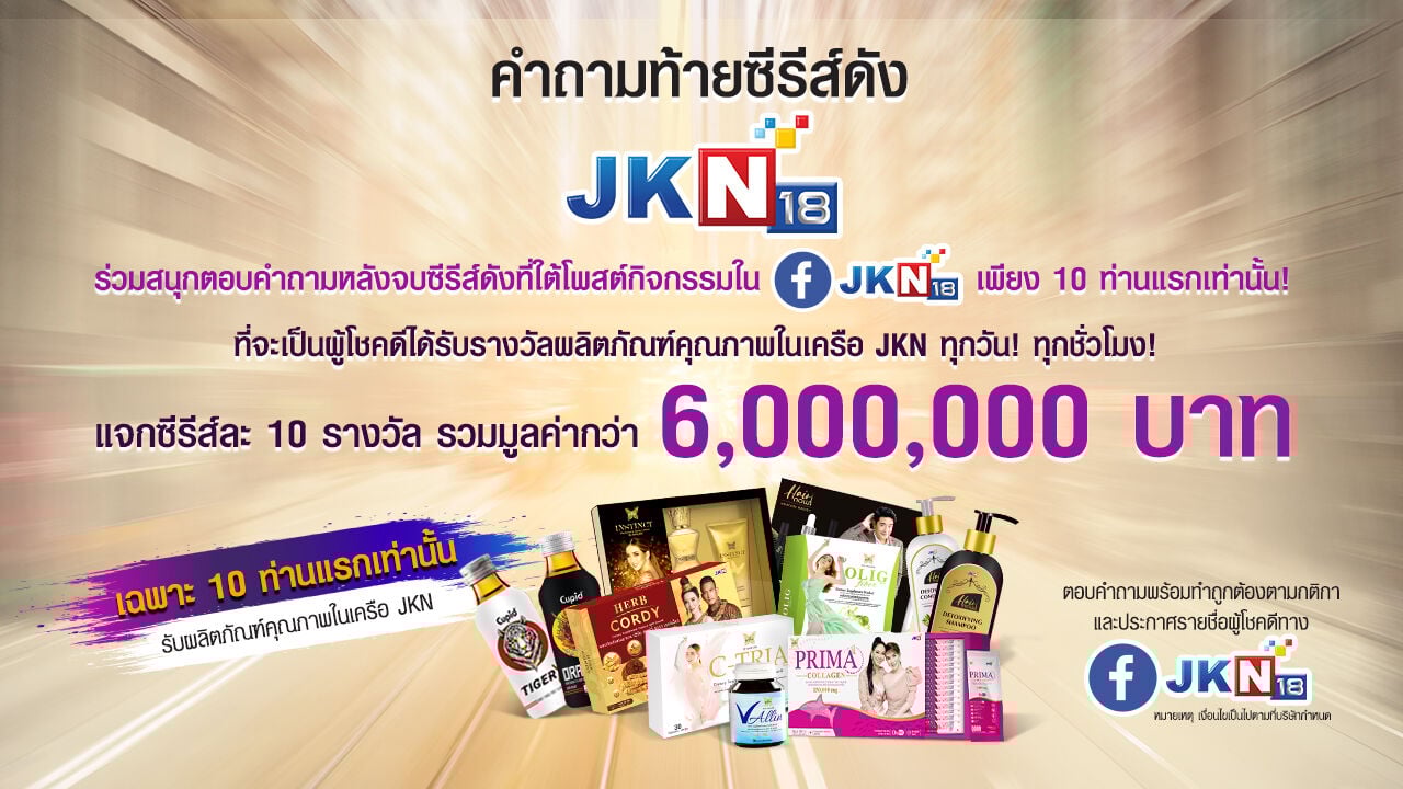 สำหรับกิจกรรม “JKN18 ใจดีแจกฟรี 6 ล้านบาท” แฟนช่อง JKN18 และแฟนซีรีส์ สามารถร่วมสนุกได้ด้วยการตอบคำถามหลังจบซีรีส์ทางเฟซบุ๊กแฟนเพจ JKN18 ผู้โชคดี 10 ท่านแรก จะได้รับรางวัลผลิตภัณฑ์คุณภาพระดับพรีเมี่ยมในเครือ JKN ที่แม่แอนจัดแจกทุกวัน ทุกชั่วโมง แจกเรื่องละ 10 รางวัล รวมมูลค่ารางวัลทั้งสิ้นกว่า 6,000,000 บาท อย่าช้า !! สามารถร่วมสนุกได้ตั้งแต่วันที่ 8 กันยายน 64 ถึงวันที่ 30 พฤศจิกายน 64