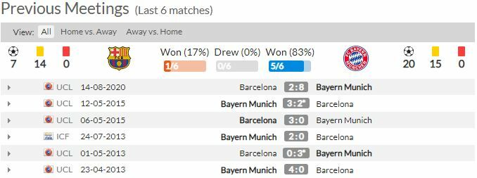 - บาเยิร์น ลงเล่น พบกับ บาร์เซโลน่า และเอาชนะได้ถึง 5 จาก 6 นัดหลังที่เจอกัน (ทุกรายการ)