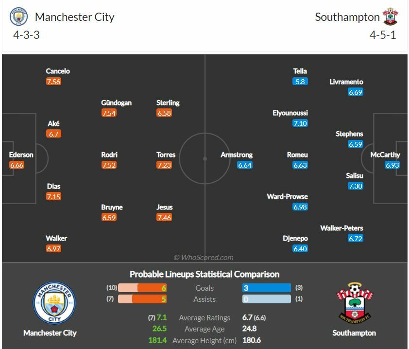 แมนฯ ซิตี้ ยังเล่นด้วยความมั่นใจ เกมรุกดุดันมาก และมีผู้เล่นทดแทนที่มีคุณภาพ สามารถลงมาเปลี่ยนเกมได้ตลอดเวลาจึงเชื่อว่า เกมนี้ทัพเรือใบสีฟ้าน่าจะถล่มเอาชนะเซาธ์แฮมป์ตัน ไปได้อย่างขาดลอย