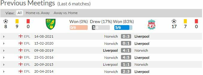ทั้งสองทีมเพิ่งพบกันมาเมื่อเดือนที่แล้วในเกมลีก และนอริช ซิตี้ แพ้ไปแบบสู้ไม่ได้ แม้เกมนี้จะได้เล่นในบ้านตัวเอง อีกทั้งทัพหงส์แดงน่าจะหมุนเวียนผู้เล่นหลายตำแหน่ง แต่ก็ไม่น่ามีปัญหาอะไร เพราะคุณภาพเหนือกว่าเยอะ และคาดว่าลิเวอร์พูลน่าจะเอาชนะไปได้อย่างไม่ยากเย็น