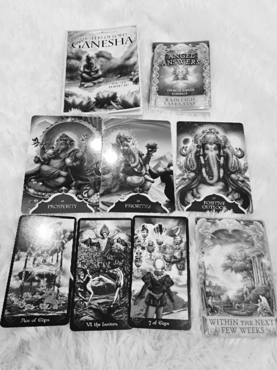 นางฟ้าบอกว่าให้รอจะมีการเปลี่ยนแปลงบางอย่างใน 2-3 สัปดาห์นี้ค่ะ พระพิฆเนศยังคงให้เรารักษาพลังงานบวก อย่าคิดมากเกินเหตุ สิ่งใดยังไม่เกิด อย่าเก็บมากังวลใจเกินควรค่ะ ท่านให้คุณเรียงลำดับความสำคัญของสิ่งที่คุณจะต้องทำก่อนค่ะ สิ่งที่ท่านอวยพรมาคือ