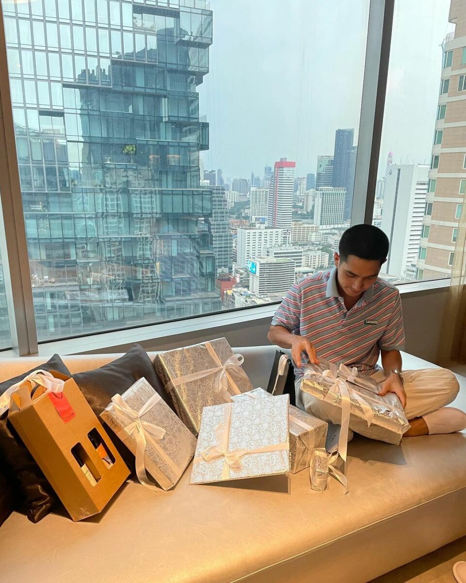 “Its our 10th celebration on ur birthday together so I got you 10 boxes @twopee #ชิ้นที่10มีชิ้นเดียวในโลกนะ”