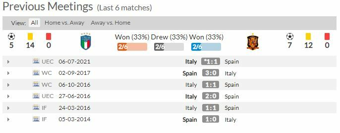 อิตาลี ยังคงทำผลงานได้อย่างยอดเยี่ยม เกมนี้ได้เล่นที่บ้านตัวเองน่าจะแพ้ยากเช่นเคย ส่วนสเปนก็ขาดกำลังหลักไปหลายรายเช่นกัน เกมนี้น่าจะเล่นกันอย่างรัดกุมและเจ้าบ้านจะอาศัยเกมรับที่เหนียวแน่นกว่าเบียดเอาชนะไปได้