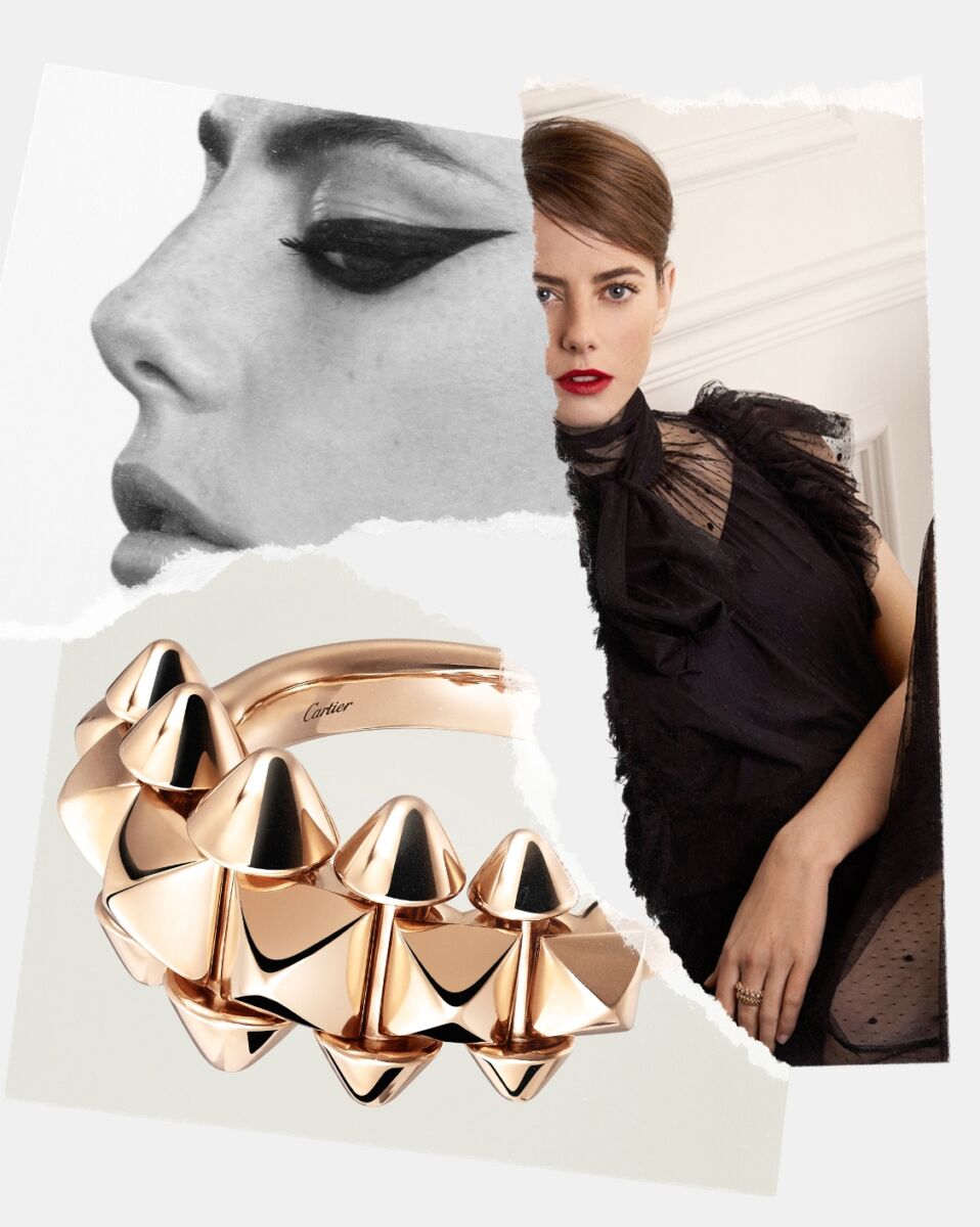 เครื่องประดับจากคอลเลคชั่นล่าสุดของแคลช เดอ คาร์เทียร์ (Clash de Cartier) ที่มาพร้อมความหรูหราอันแปลกใหม่ยิ่งกว่าเคย ฉีกทุกรูปแบบแห่งความคลาสสิก ด้วยขนาดที่ไม่ปราณี สีดำที่เข้มลุ่มลึกขึ้น หมุดโอเวอร์ไซส์ และนานาวิธีสวมใส่ที่ยิ่งโดดเด่น ราวกับพลิกโฉมคอลเลคชั่นแคลช เดอ คาร์เทียร์ (Clash de Cartier) อย่างหมดจด ปลดปล่อยอารมณ์ของแรงปะทะระหว่างสองขั้วต่าง เส้นสายเรขาคณิตกับความโค้งนูนราวกับพองลม เครื่องประดับชิ้นใหม่เหล่านี้จึงกู่ก้องพลังแห่งแรงปะทะระหว่างสองเจตคติที่แตกต่างให้ยิ่งสะเทือนกว่าที่เคย
