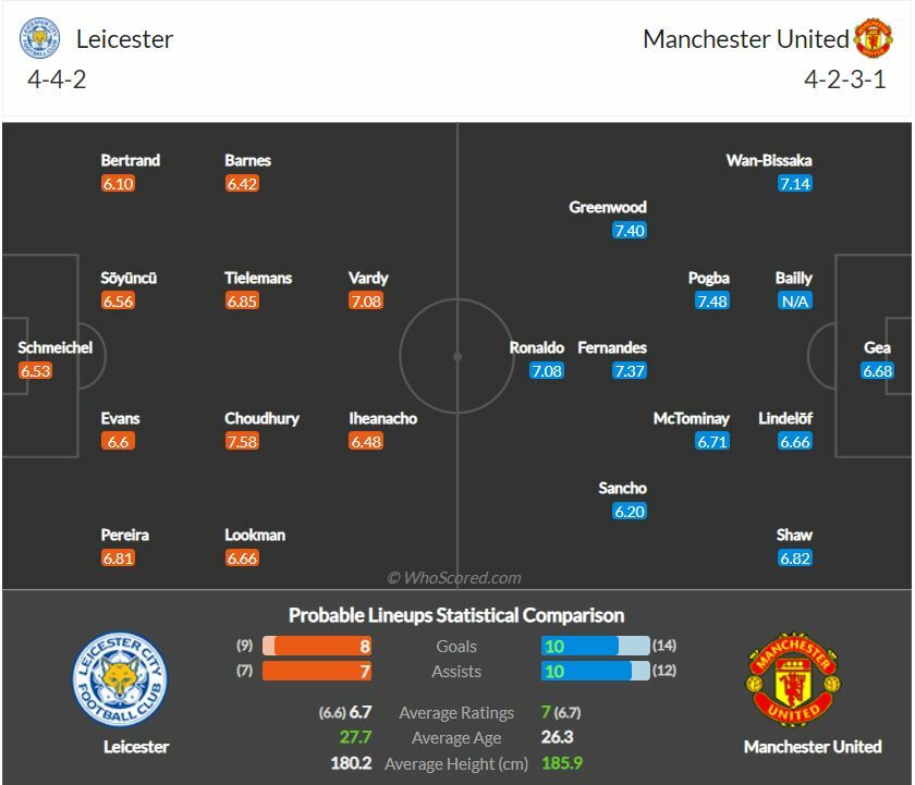 - ด้านกองหน้า เจมี่ วาร์ดี้ ดาวซัลโวของทีมจะได้ลงเล่นร่วมกับ เคเลชี่ อิเฮนาโช่ โดยมี เจมส์ แมดดิสัน, ยูริ ตีเลอมันส์ และฮาร์วี่ย์ บาร์นส์ ปั้นเกมรุกสนับสนุน